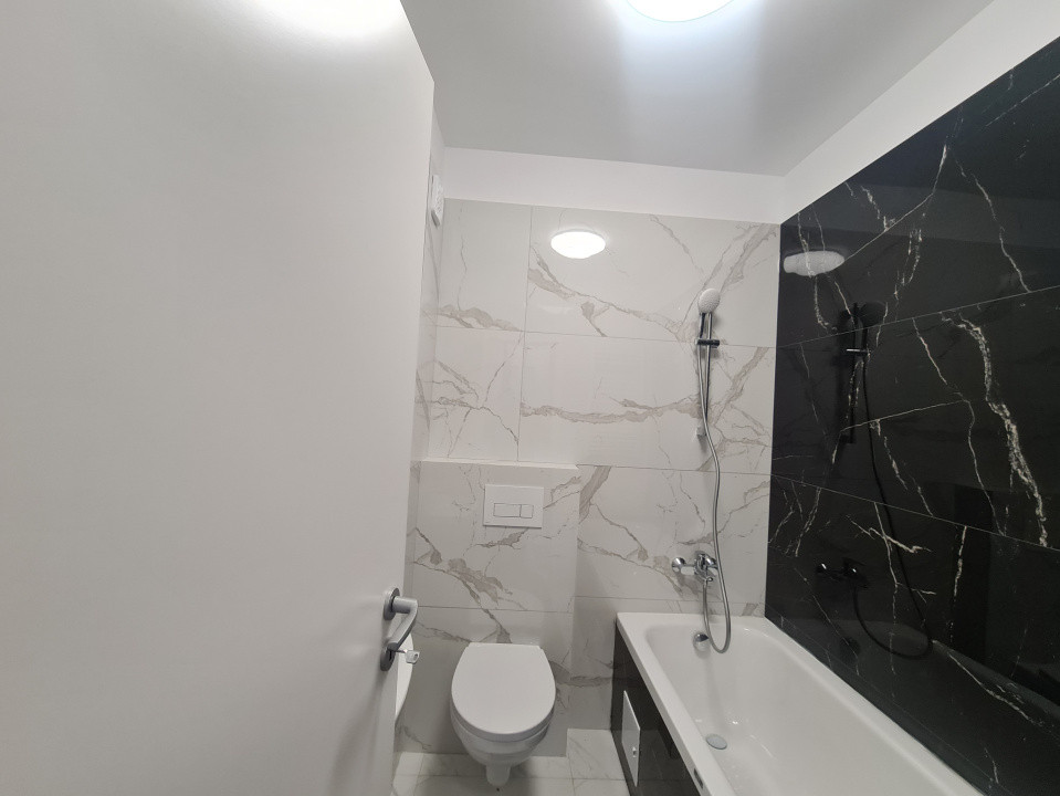 Finisajele interioare includ: pardoseli montate, parchet – Bella Casa, gresie si faianta, pereti si tavane finisatre cu vopsea lavabila alba, instalatii electrice compet functionale.