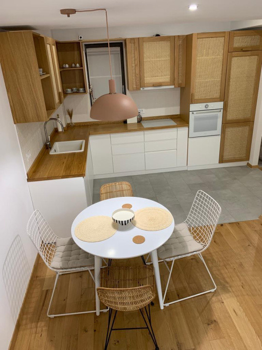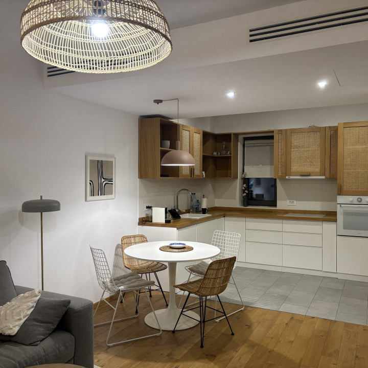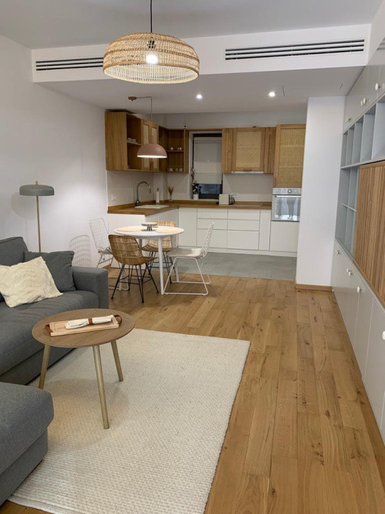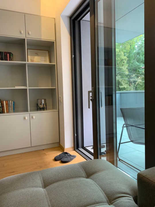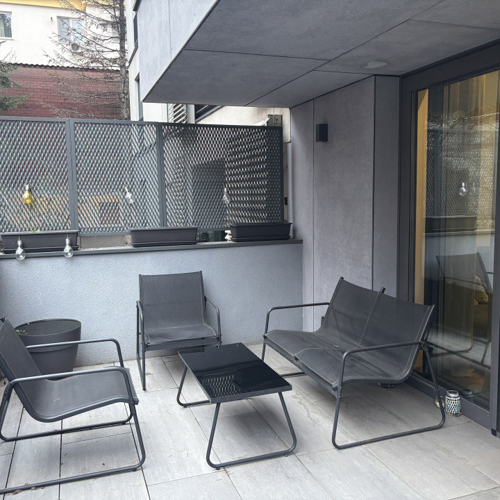 Apartamentul, poziționat la un parter înalt, se deschide către o terasă de 10 mp, un mic refugiu privat unde lumina dimineții și verdele din jur creează un ritual al calmului și al rafinamentului. Interiorul este complet mobilat luxury, cu texturi fine, accente moderne și o atenție impecabilă la detalii.
