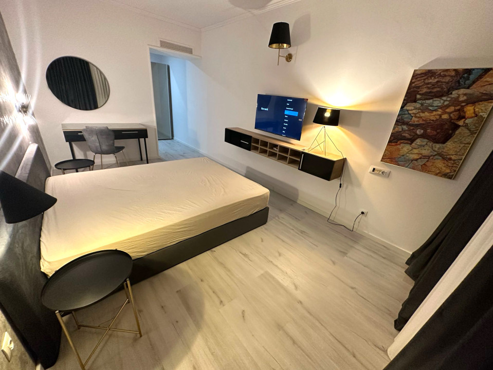 Apartament 2 camere nou renovat complet situat în incinta Rin Grand Residence Compartimentarea include un hol dotat cu dressing , o baie cu cadă, dormitorul matrimonial, pat, saltea, perdele, draperii noi Smart tv 140cm cu Netflix nou internet-tv bucatarie open space, living.