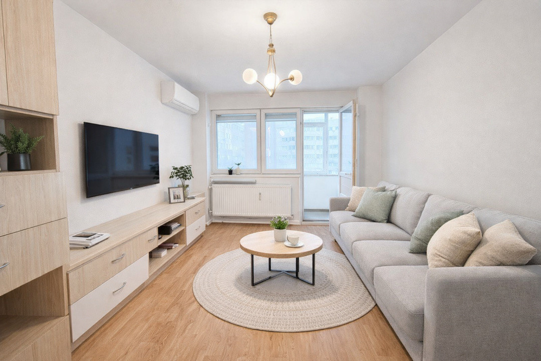 Camera principală spaţioasă oferă un loc generos pentru seri împreună, dormitoarele — linişte și intimitate după o zi de muncă, iar balconul închis poate deveni colţul tău de relaxare sau un mic birou.