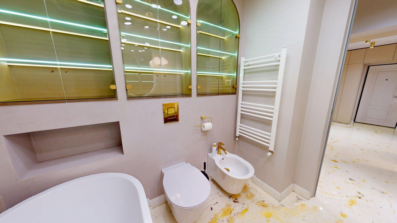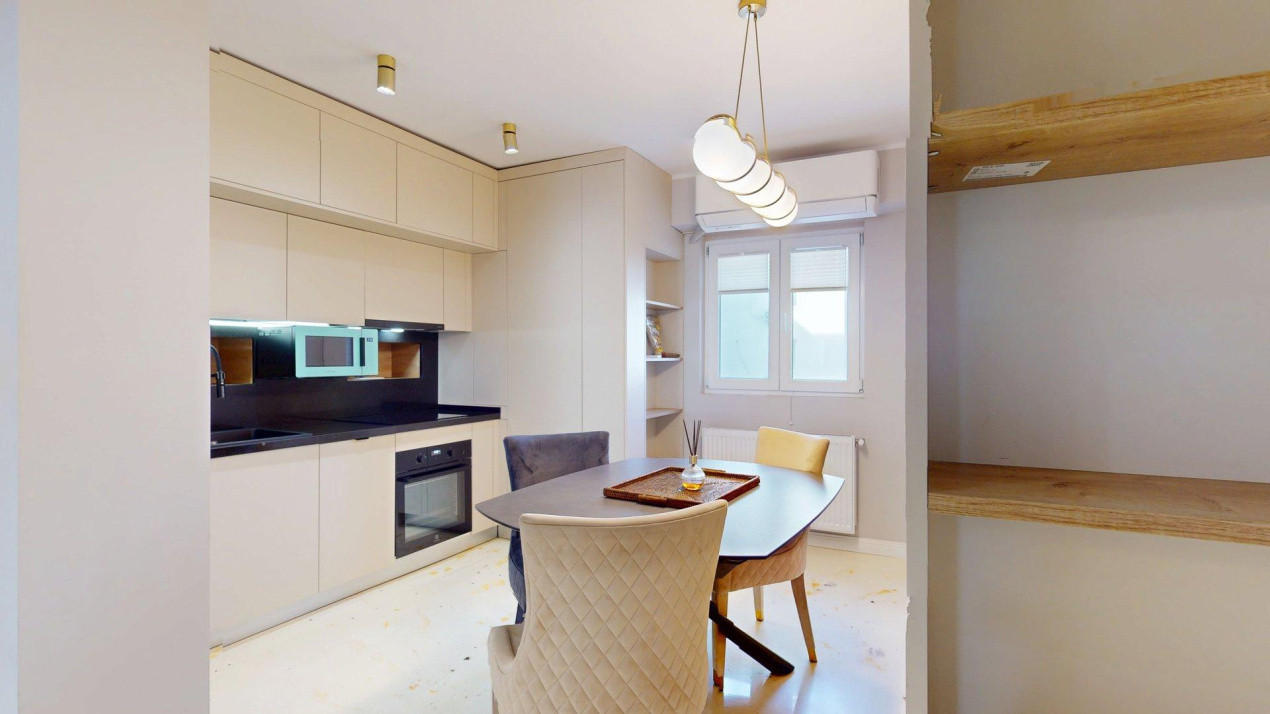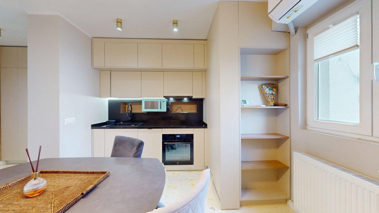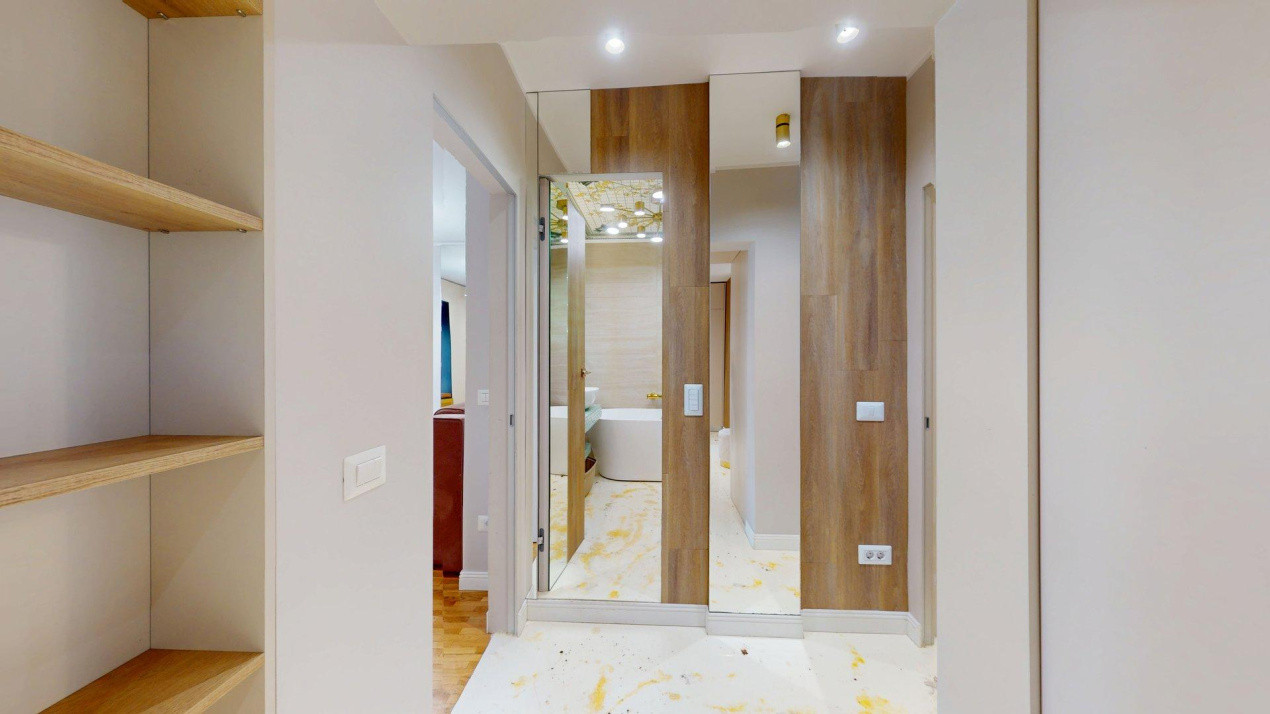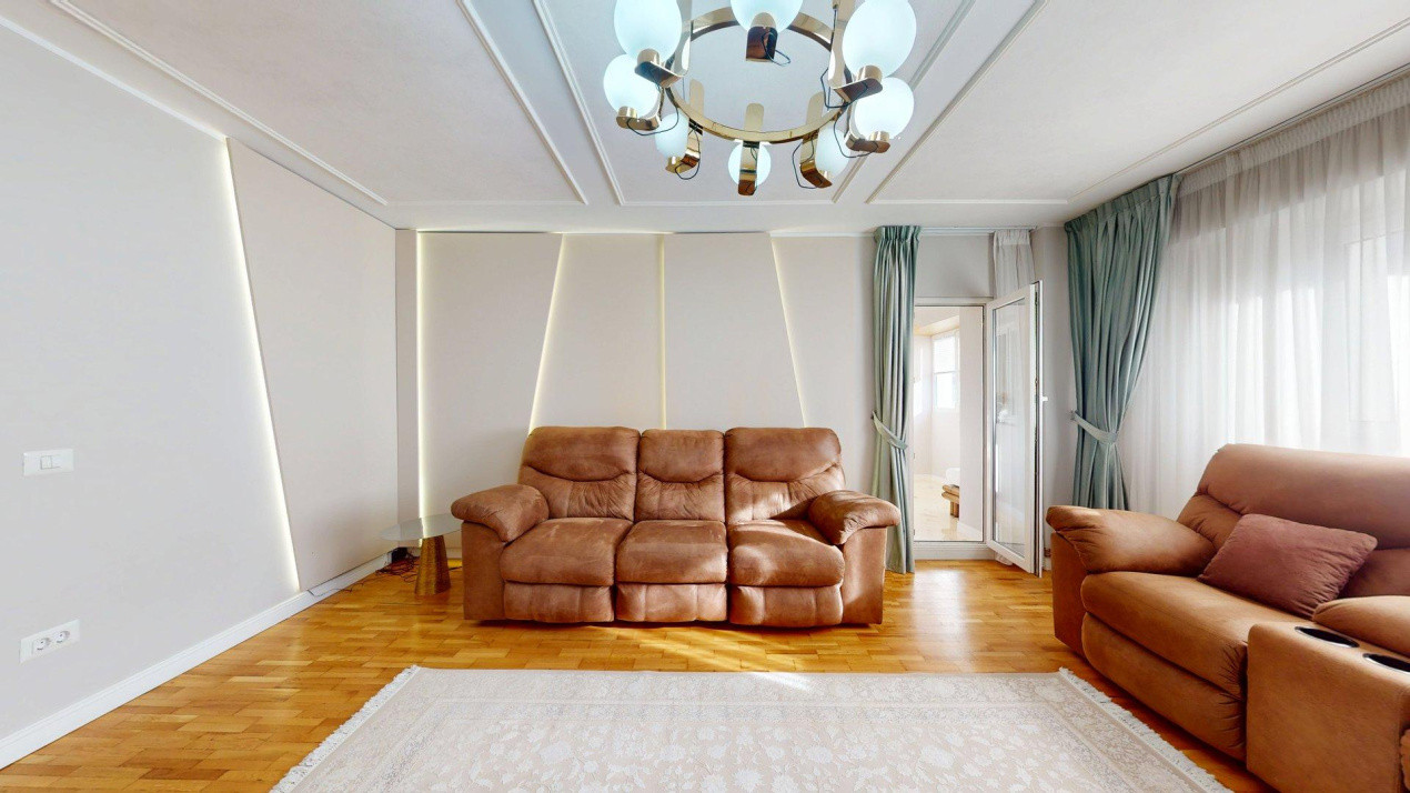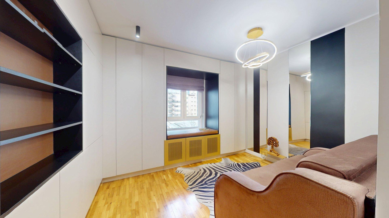 Un spațiu în care fiecare detaliu a fost ales cu grijă, de la tapetele pictate manual în Italia, până la luminile calde care se reflectă în texturile nobile. Totul este nou, impecabil, pregătit să devină acasă pentru cineva care caută frumosul.