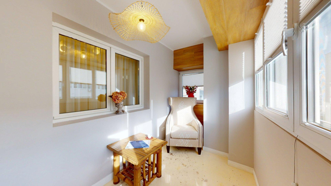 Un spațiu inundat de lumină, perfect pentru citit, meditat sau savurat un espresso într-o dimineață leneșă.