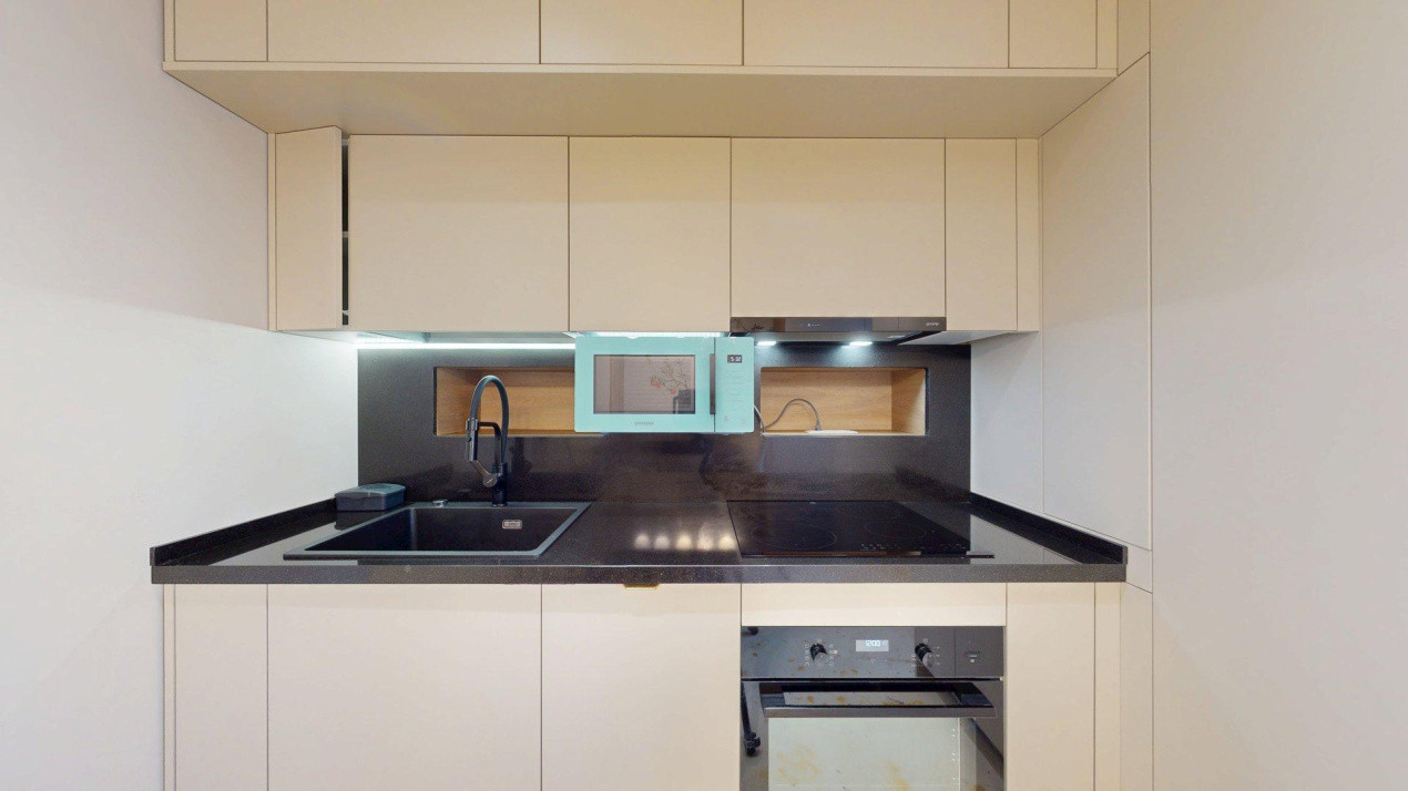 Un spațiu creat pentru oameni care iubesc momentele în familie. Blatul de quartz, pardoseala epoxidică, electrocasnicele premium și tapetul pictat manual conturează o bucătărie ce ar putea fi dintr-o revistă, dar este cu adevărat a ta.