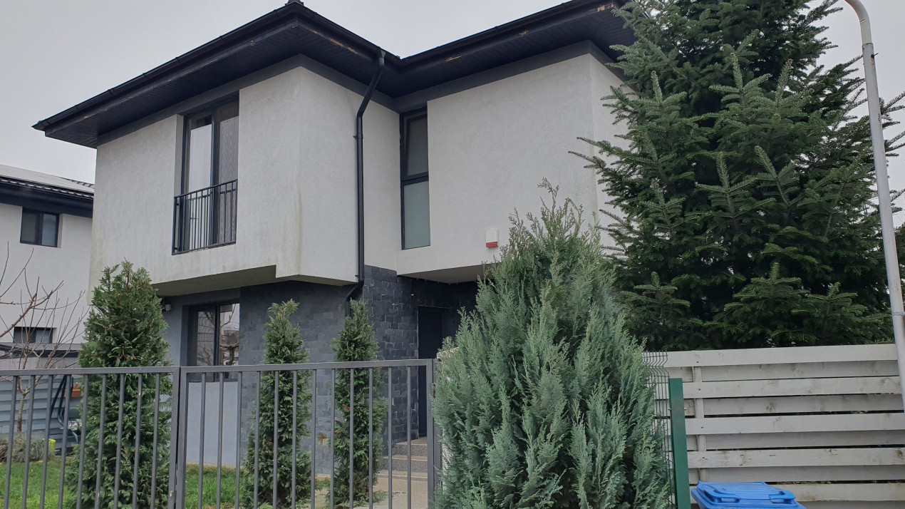 Se oferă la vânzare o vila moderna tip duplex, construita spate în spate, fiecare unitate beneficiind de acces complet separat din străzi diferite, oferind astfel intimitate similara unei case individuale.