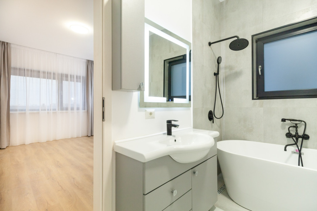 - Living spatios cu iesire directa pe terasa acoperita de 18mp, perfecta pentru momentele de relaxare in aer liber;