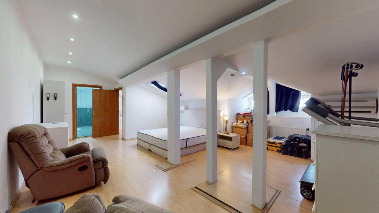 • Mansarda extinde spațiul de locuit și poate fi amenajată pentru dormitoare suplimentare, o zonă de relaxare sau un birou de acasă cu vedere spre grădină.